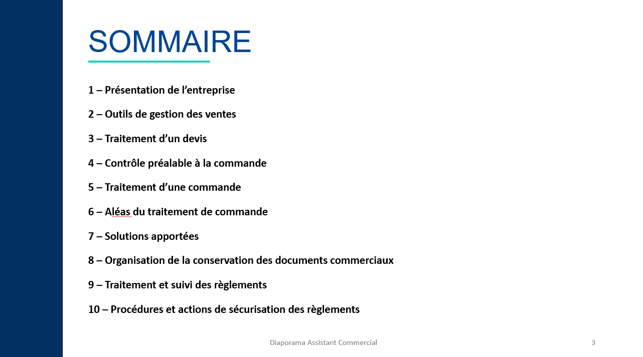 Ce diaporama est le support idéal pour les stagiaires de la formation Assistant commercial qui préparent les épreuves du Titre Professionnel. C’est un élément indispensable pour l’épreuve orale de la certification. Celui-ci doit être présenté au jury le jour de l’examen afin d’illustrer votre pratique professionnelle en qualité d’Assistant commercial.